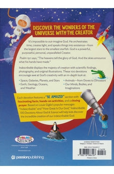 Discover the Wonders of the Universe with the Creator. Based on Louie Giglio's popular messages "Indescribable" and "How Great Is Our God," Indescribable: 100 Devotions About God & Science will help kids discover the incredible creation of our indescribable God.