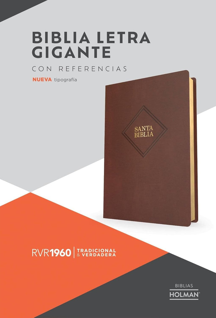 BIBLIA LETRA GIGANTE CON REFERENCIASNueva tipografíaEl diseño amplio y hermoso de esta Biblia es ideal para la lectura personal, la enseñanza y la predicación pública de la Palabra.Las referencias y ayudas adicionales son el complemento perfecto al texto de la Reina-Valera 1960, la versión preferida en español. Con esta Biblia podrás llevar la Palabra de Dios contigo y atesorarla en tu corazón.Características:•Nueva tipografía elegante y fácil de leer• Referencias• Cómo leer y entender la Biblia•Concordancia•Panorama histórico de la Biblia•Calendario anual• Buenas nuevas de salvación• Palabras de Cristo en rojo•Armonía de los evangelios• Síntesis de cada libro• Mapas a todo color• Palabras de aliento para tu caminar con DiosGIANT PRINT BIBLE WITH REFERENCESNew typographyThe large and beautiful design of this Bible is ideal for personal reading, teaching and public preaching of the Word.The references and additional tools are the perfect complement to the Reina Valera 1960 text, the most preferred version in Spanish. With this Bible you will be able to take the Word with you and treasure it in your heart.Features:• New elegant and easy to read typography.• References• How to read and understand the Bible• Concordance• Overview of the Bible’s history• Annual calendar• The Good News of Salvation• Words of Christ in red• Harmony of the Gospels• Synthesis of each book• Full-color maps• Words of encouragement for your walk with God