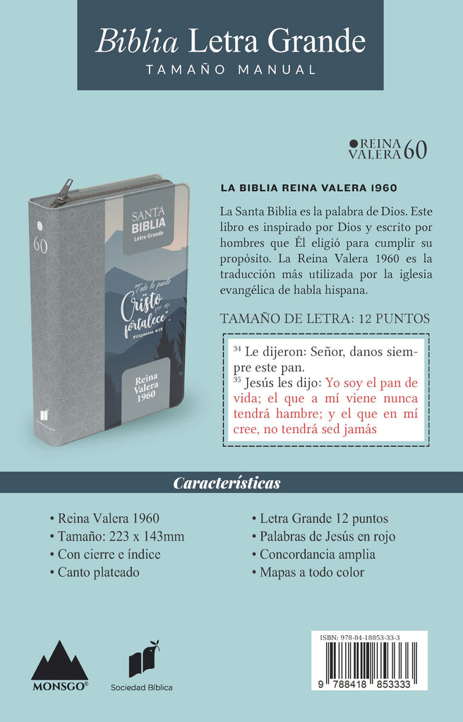 Biblia RVR 1960 Letra Grande Tamaño Manual Filipenses 4:13 con Cierre e Índice