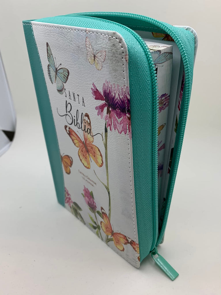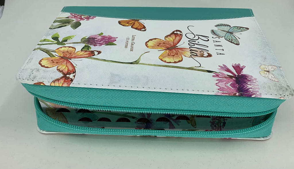 Biblia RVR 1960 Letra Grande Tamaño Manual Mariposas Turquesa Símil Piel