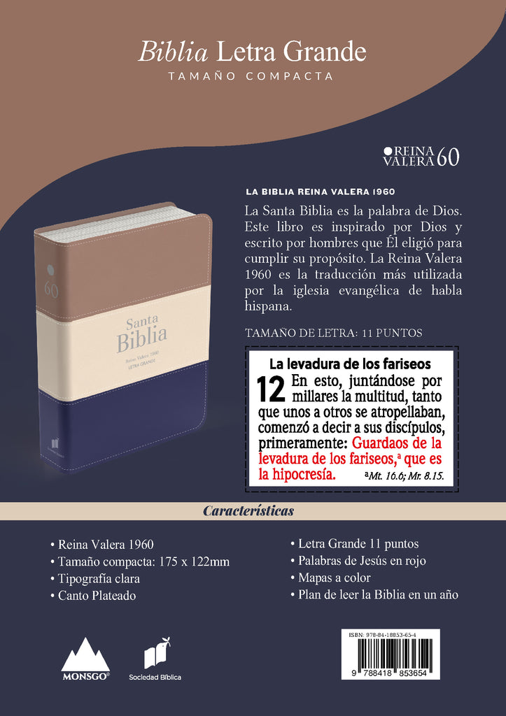 - Tamaño compacto, letra grande, en una Biblia fácil de llevar