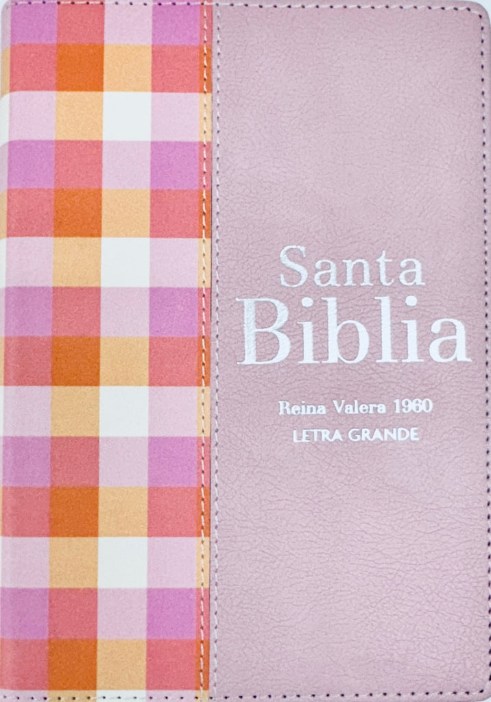 Biblia RVR 1960 Compacta Símil Piel Cuadros Rosa