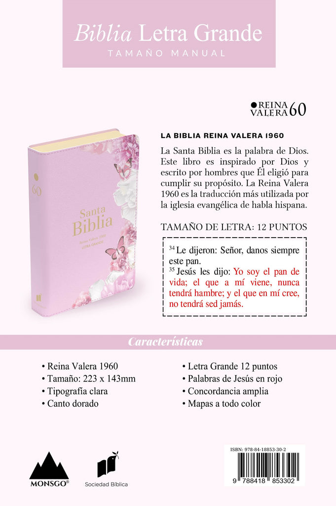 Biblia RVR 1960 Letra Grande Tamaño Manual Símil Piel Rosa Claro
