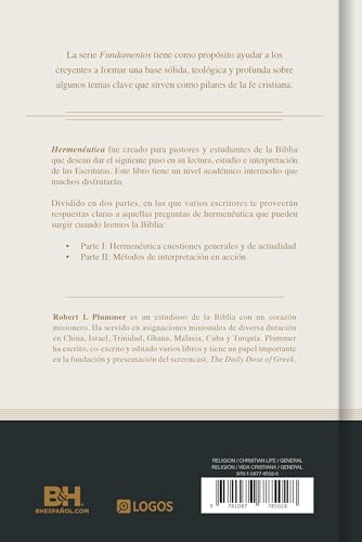 La serie Fundamentos tiene como propósito ayudar a los creyentes a formar una base sólida, teológica y profunda sobre algunos temas clave que sirven como pilares de la fe cristiana.Hermenéutica fue creado para pastores y estudiantes de la Biblia que desean dar el siguiente paso en su lectura, estudio e interpretación de las Escrituras. Este libro tiene un nivel académico intermedio que muchos disfrutarán.Dividido en dos partes, en las que varios escritores te proveerán respuestas claras a aquellas preguntas de hermenéutica que pueden surgir cuando leemos la Biblia: Parte I: Hermenéutica cuestiones generales y de actualidad Parte II: Métodos de interpretación en acciónThe Fundamentos series aims to help believers build a solid, theological, and deep foundation on key topics that serve as pillars of the Christian faith.Hermeneutics was created for pastors and Bible students who want to take the next step in their reading, study, and interpretation of Scripture. This book has an intermediate academic level that many will enjoy.Divided into two parts, various writers will provide you with clear answers to those hermeneutical questions that may arise when reading the Bible: Part I: Hermeneutics - General and Current Issues Part II: Interpretation Methods in Action