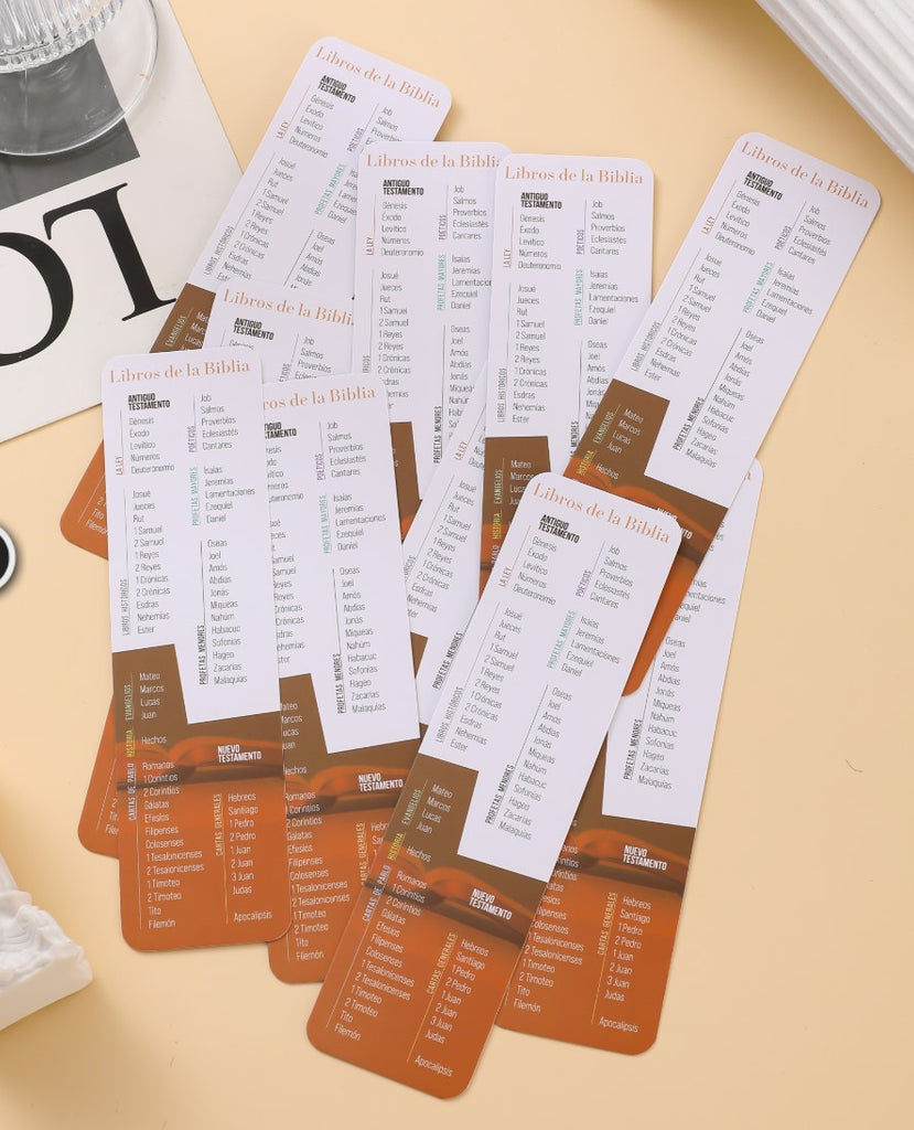 Pack 30 marcadores de libro en caja de cartón. Libros de la Biblia
