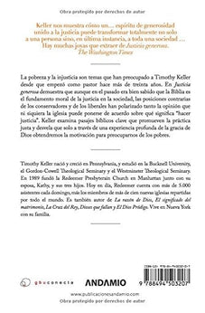 La pobreza y la injusticia son temas que han preocupado a Timothy Keller desde que empez como pastor hace ms de treinta aos. En Justicia generosa demuestra que aunque en el pasado era bien sabido que la Biblia es el fundamento moral de la justicia en la sociedad, las posiciones contrarias de los conservadores y de los liberales han polarizado tanto la opinin que ni siquiera la iglesia puede ponerse de acuerdo sobre qu significa hacer justicia. Keller examina pasajes bblicos clave que promueven la prctica justa y desvela que solo a travs de una experiencia profunda de la gracia de Dios obtendremos la motivacin para preocuparnos de los pobres.