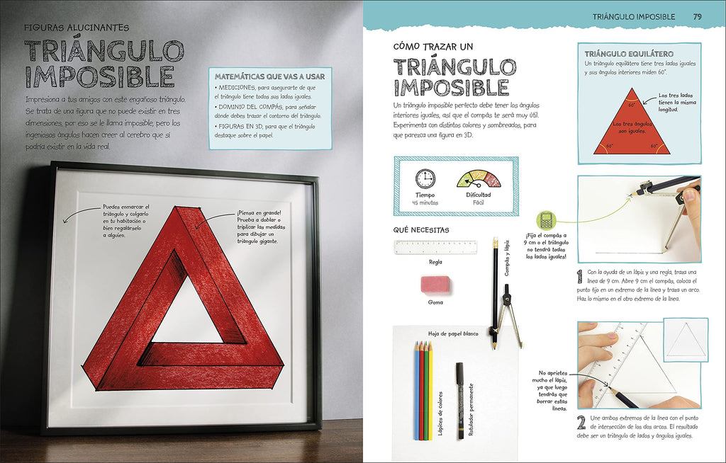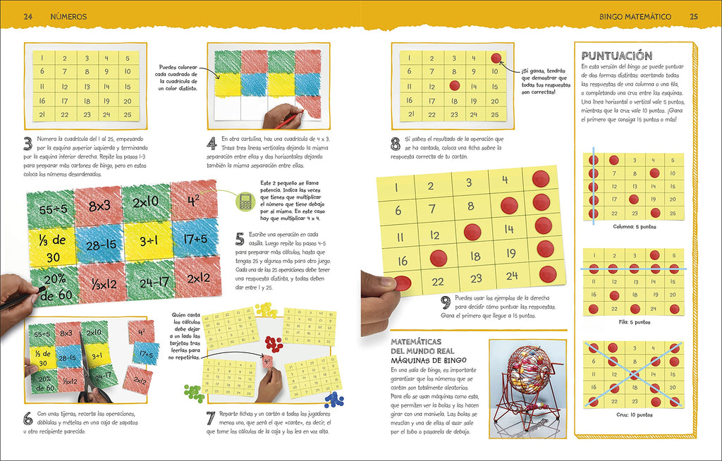 ¡Las mates no son aburridas¡ La clave está en cómo enseñarlasCon este libro los niños pueden jugar, hacer proyectos entretenidos y manualidades divertidas mientras aprenden matemáticas fácilmente.Cada uno de los proyectos de este libro viene acompañado de fotografías y sencillas instrucciones paso a paso que ayudarán a cualquier niño a asimilar conceptos sin darse cuenta.Mates divertidas presenta actividades que cubren todos los aspectos de las matemáticas: los números, las medidas, la geometría…Practica la multiplicación mientras juegas al bingo, aprende fracciones preparando una deliciosa pizza o aprende geometría dibujando un triángulo imposible. A lo largo del libro, los recuadros explicativos muestran cómo las habilidades que has aprendido se pueden usar en el mundo real.Un libro imprescindible con multitud de recursos para aprender matemáticas de manera sencilla y divertida.-----------------------------------------------------------------------------------------------------------A fun and engaging STEM activity book for kids that combines creativity and calculations - perfect for budding mathematicians!This is the perfect math exercise book for children interested in the STEM field. Choose between 27 creative projects and experiments that will turn your child into a math whizz! It's the perfect book for curious minds interested in taking the mystery out of math.Explore the exciting world of numbers and math problem-solving! In the pages of this math book for kids you’ll discover:• 27 hands-on creative projects to engage reluctant mathematicians between the ages of 9-12• Easy-to-follow step-by-step instructions will show you how to make each project• All materials used can be easily found around your home with no specialist equipment needed• Every project includes an explanation of how math is involved in creating the project or the results of the experiment• Real-world math projects show that math isn’t just abstract - it has an impact in the real world too!Produced in conjunction with the Smithsonian Institution, SI Math Maker Lab is designed to appeal to math geeks and those that prefer practical projects. To complete these engaging projects, kids don’t need to be math geniuses or even know how to use a calculator. Each task comes with easy-to-follow instructions, photographs, and illustrations to help whip up super cool mathematics creations! Nota:Aviso: este libro tiene una pequeña marca de restantes (pequeño punto o línea negra en la parte inferior del libro). El editor lo coloca allí para garantizar que no se devuelva por el precio completo. Si bien esta marca suele ser apenas perceptible, significa Grandes ahorros para usted.